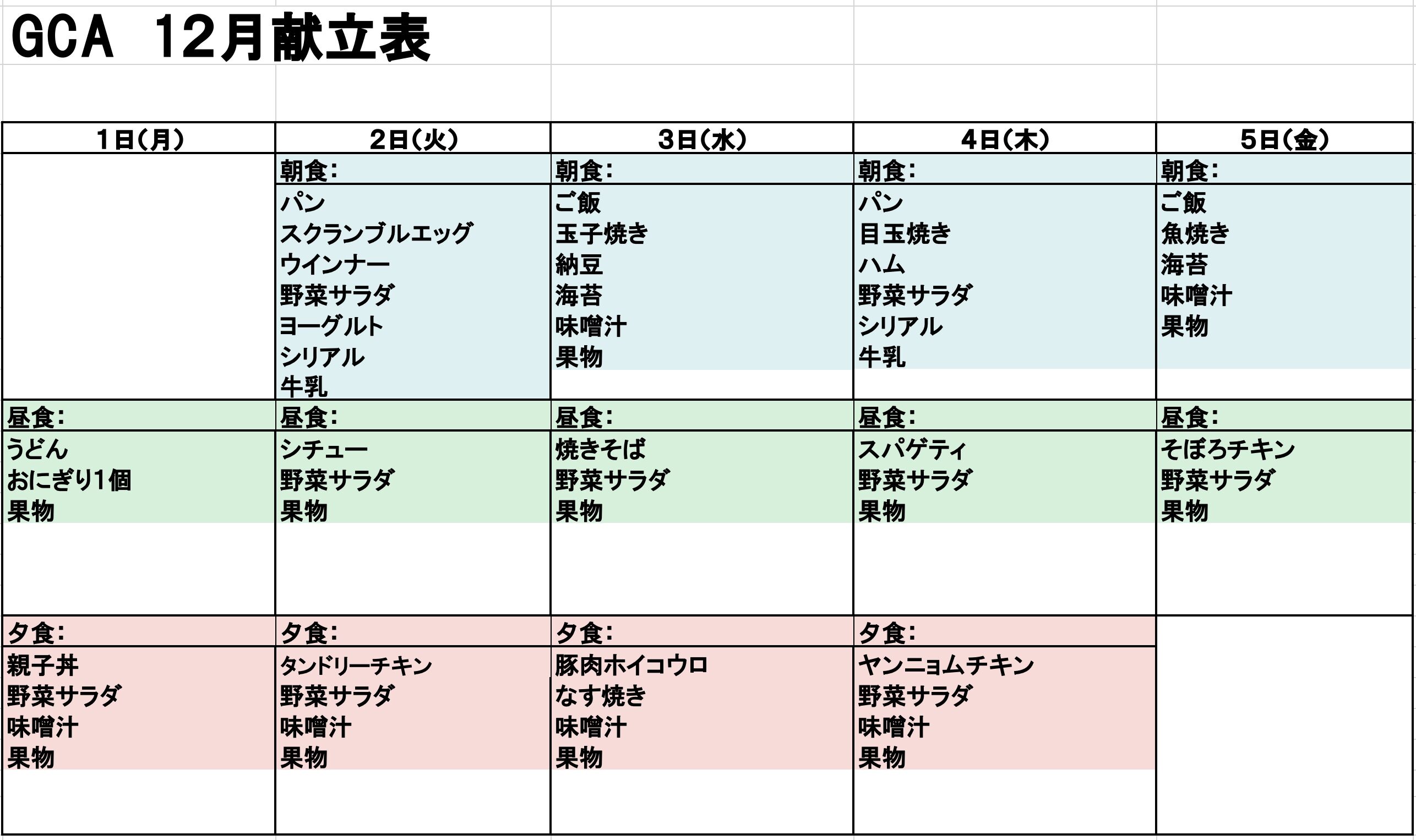 献立表