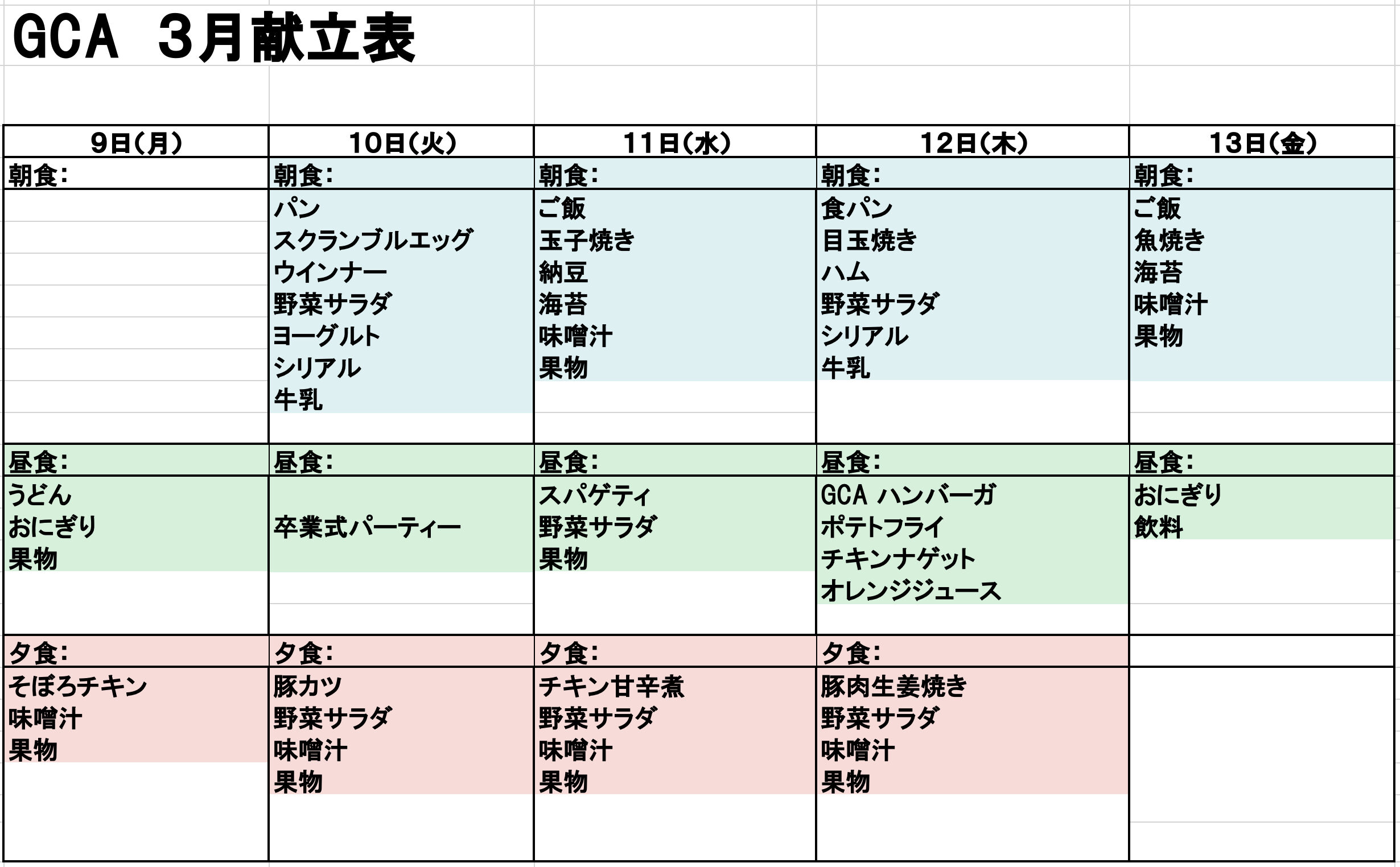 献立表